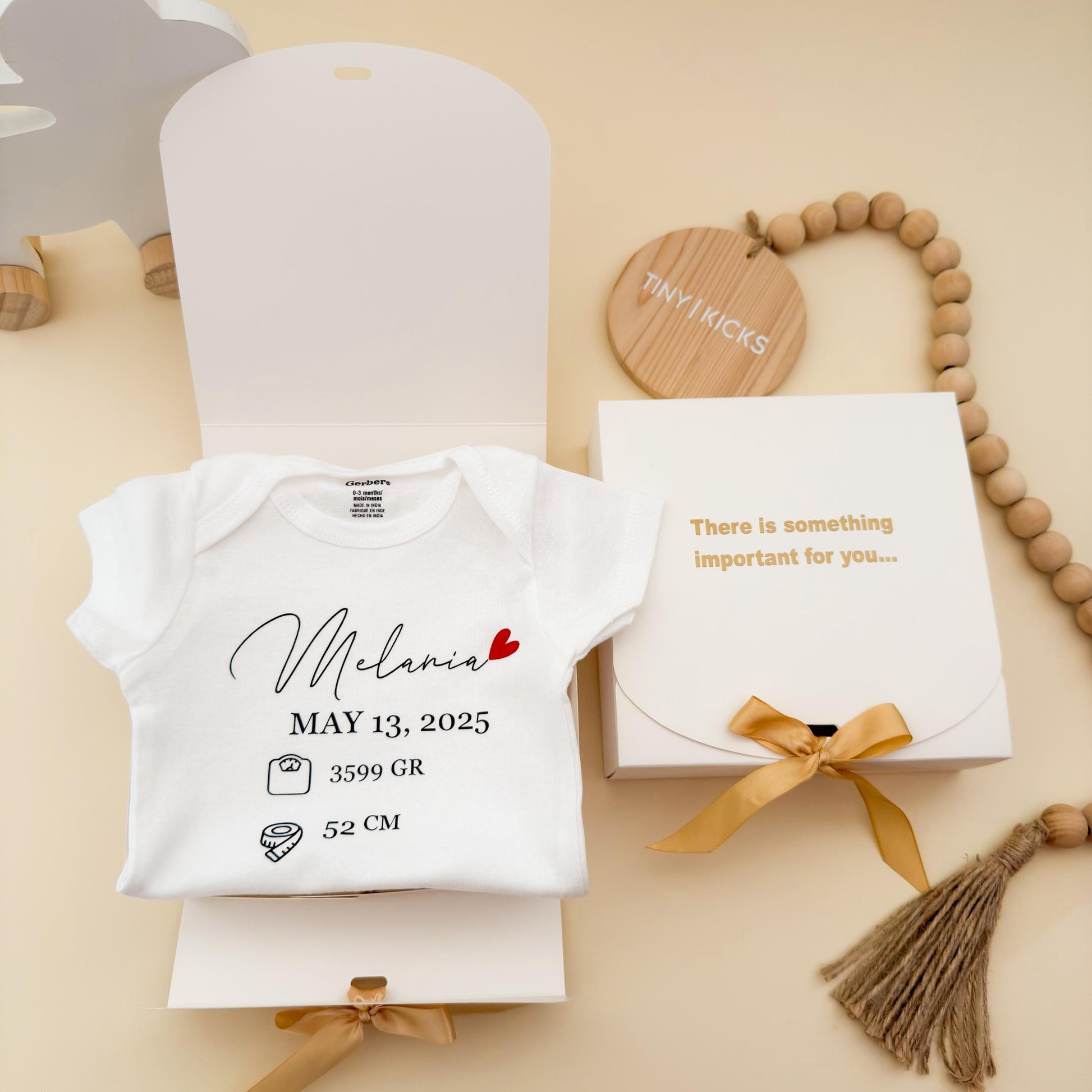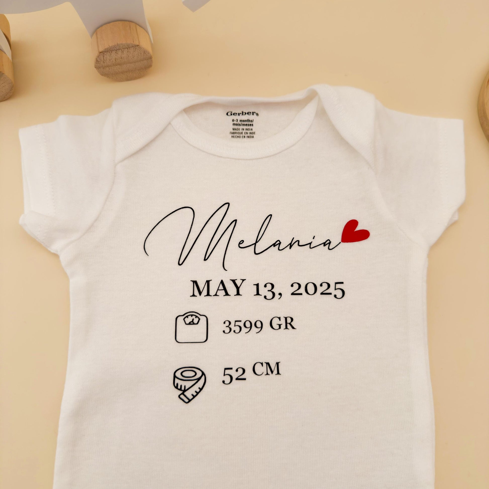 Celebrate your baby’s arrival with this personalized newborn bodysuit — a perfect keepsake to remember the most special day! Each onesie is customized with your baby’s name, date of birth, weight, and length, making it a thoughtful and heartwarming gift for new parents, baby showers, or birth announcements.