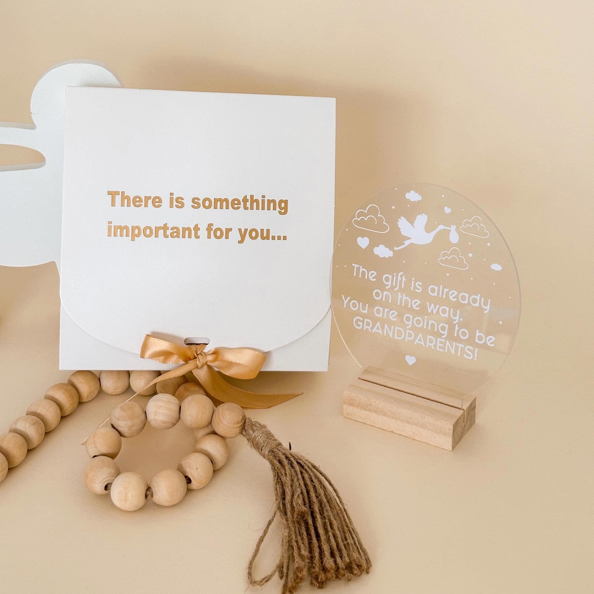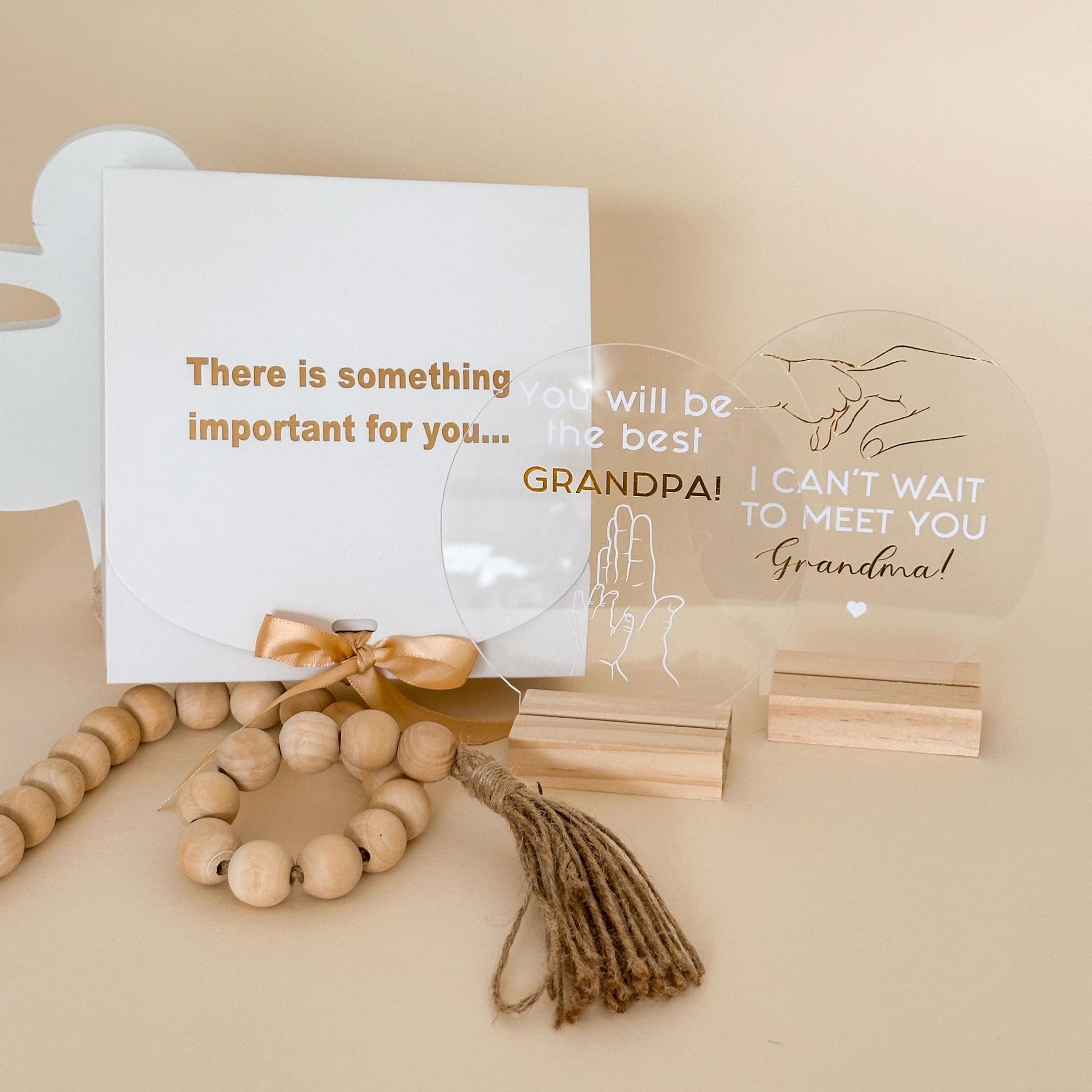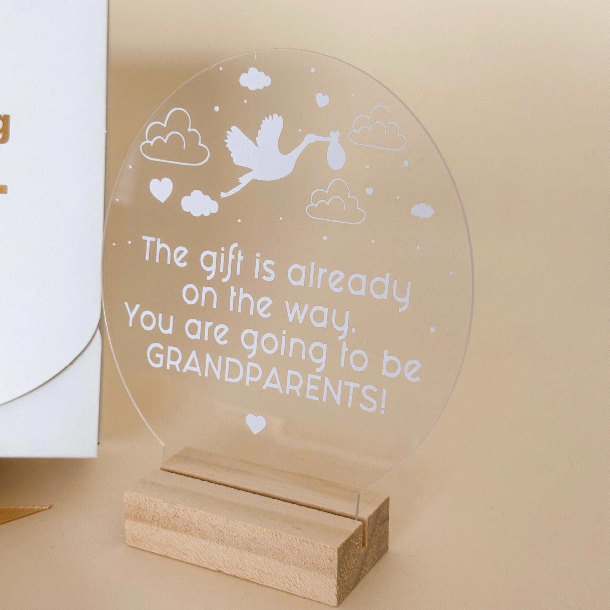 Make your pregnancy announcement extra special with this elegant acrylic sign, the perfect way to surprise future grandparents! The sign features a heartwarming message, and you can choose from different text options Thoughtfully designed, this keepsake makes a meaningful and lasting memory for grandma and grandpa.