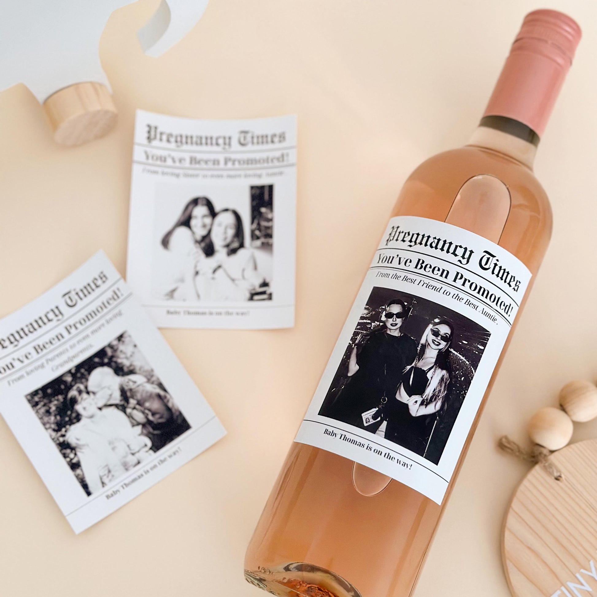 Celebrate the big news in style with our Pregnancy Times Wine Labels – the perfect way to announce your pregnancy to your loved ones! This personalized newspaper-style sticker turns an ordinary wine bottle into a memorable reveal. Whether you’re surprising a future aunt, uncle, grandparent, or best friend, this thoughtful and fun gift will make them feel truly special.