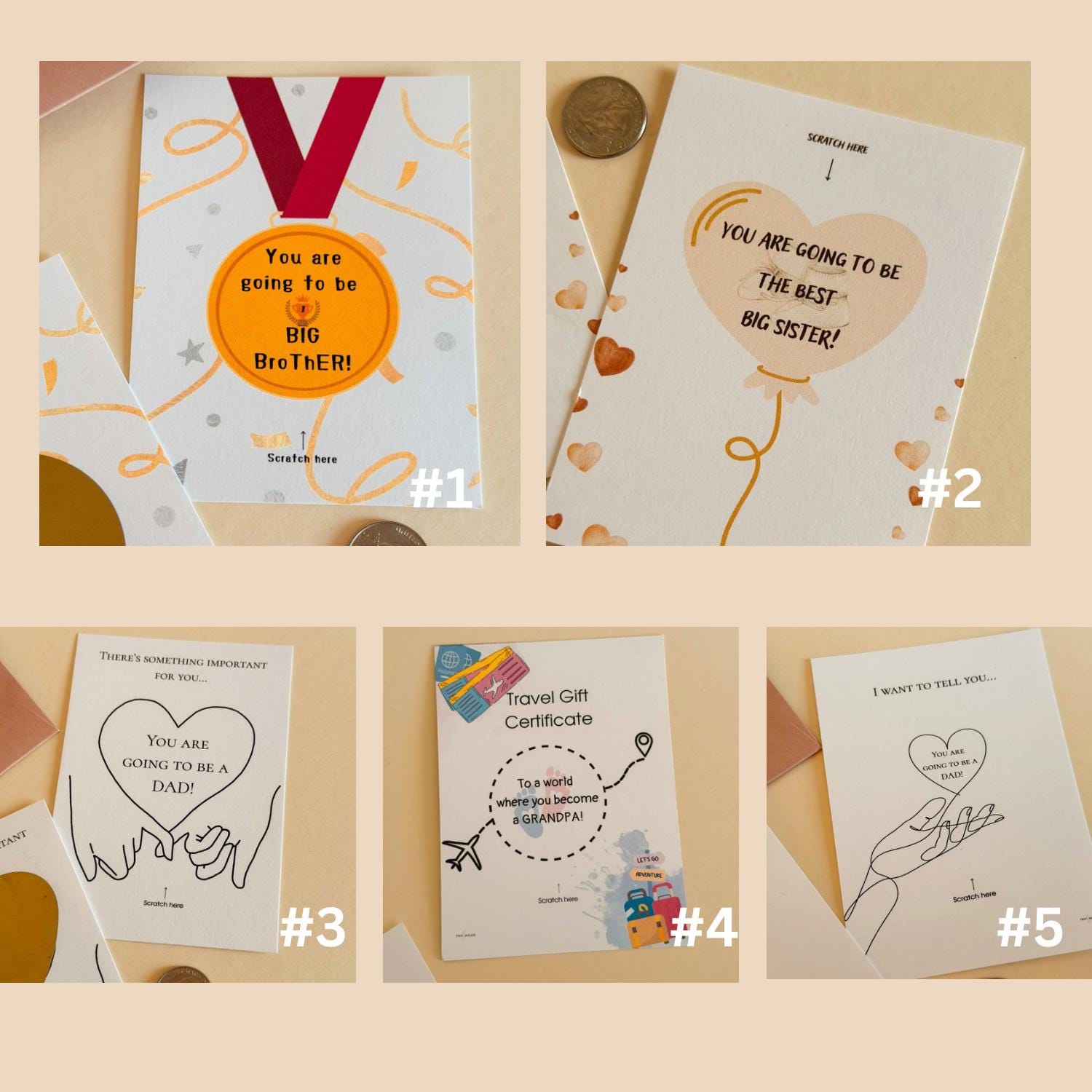 Surprise our loved ones with fun and memorable pregnancy announcement! Our scratch-off cards feature a stylish design with a hidden message under a heart-shaped scratch area.