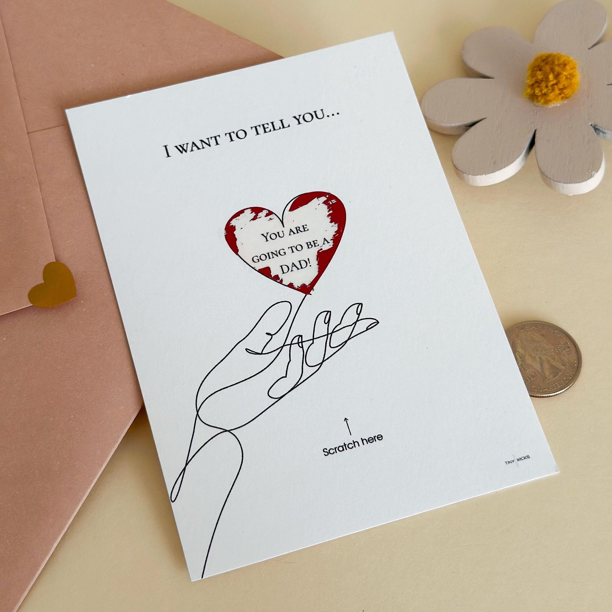 Surprise the dad-to-be with a fun and memorable pregnancy announcement! Our scratch-off cards feature a stylish design with a hidden message under a heart-shaped scratch area. Simply hand the card to your partner and watch their excitement as they reveal the big news!